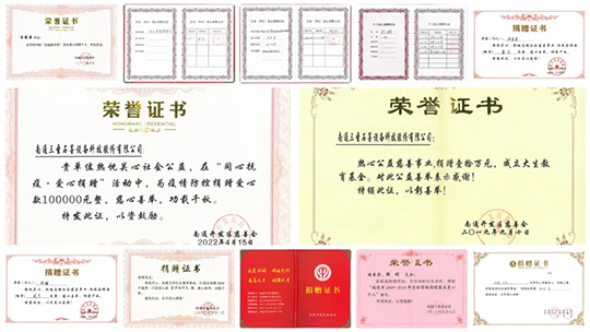 近二十年來,南通三圣企業(yè)集團(tuán)通過設(shè)立專項(xiàng)基金、捐贈(zèng)物資、組織志愿者服務(wù)、參加公益活動(dòng)等多種形式,長期致力于教育助學(xué)、鄉(xiāng)村振興、應(yīng)急救援、環(huán)境保護(hù)、助老助困等領(lǐng)域發(fā)揮自己的光和熱,也曾受到政府各級的諸多表彰。